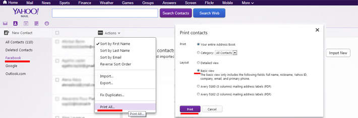 Exporter ses contacts facebook de Yahoo